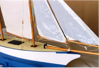 The necessary eyes, hooks and sheet horses were bent up from fine brass wire and those that were to be fixed in position were simply superglued into deck, gunwhale and spars as appropriate. Because I was concerned to keep the rig as uncluttered as possible, I made a set of very small bowsies from 1/16 ply and in some cases settled for a form of jamming cleat to take the topsail sheets. It means fewer bowsies, at the expense of Irish whips in the rigging. You pays your money and makes your choice. One of the joys of very small boats like this is that the forces on the sails are small enough for almost anything to be enough to hold them; even a slip of masking tape to hold the end of a sheet will do the trick. The mounting of the masts caused a few problems. I had decided early on to fit mast tubes, partly as a way of reducing the diameter of the masts to something more fitting to the delicacy of the hull. The butt of each mast was also fitted into a length of brass tube. This ensures that you can get the mast out again, even after a long sailing session. I have, before now, been embarrassed by not being able to get the masts out of a boat which used plain wooden masts mounted in mast tubes, though admittedly this was after a day of almost continual rain. The problem was how to create a mast step. Lacking an endoscope, there was no way of seeing inside the hull. Careful probing revealed nothing in the way of a mast step, not even a hole drilled into the bottom. Drilling down through the mast hole didnt seem likely to work and an attempt to glue the mast tube to the bottom of the boat failed, probably because of the accumulated dust and rubbish in there. In the end, I plugged the lower ends of the mast tubes and mounted the upper ends in small deck plates which were epoxied to the deck, so that the mast loads were supported by the deck. This is not the best engineering practice, but you can do it in a small model without too much risk of the whole thing collapsing.