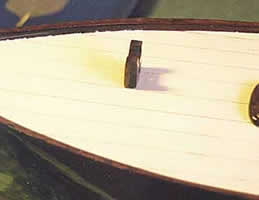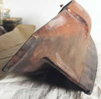 The Paxton Legacy III The third and last of the Paxton hulls that I restored was the larger cutter. It is essentially similar to the small one described in part I, but 22 inches long and with a displacement of four pounds. The hull was carved from two pieces of wood joined on the centre line. As can be seen from the photos of her in her as found state, the deck was on and there were a number of fairly serious defects in the hull itself. The two halves had started to part at the bow and a large screw had been inserted to hold them together. There were also some nails through the deadwood; Im not sure whether these were repairs or part of Paxtons normal construction practice.