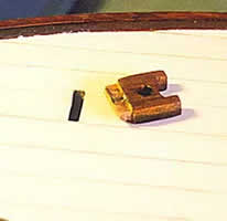 After a fair amount of effort and after the paint job was complete I had to look at the photos to remind myself which side of the boat it was on. The bitts for the inner end of the bowsprit were originally mounted from under the deck before it was fitted, but had fallen into the boat, so I made up a new set from mahogany designed to be set in from above.