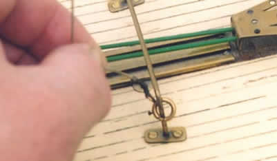 The end of the mainsheet is fitted with a brass spring catch similar to those