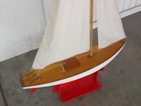 This query comes from a member of the USVMYG I recently purchased the model yacht shown in the attached photos. The hull is of bread and butter construction with lead ballast and the deck is of one piece of wood.