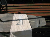Lead ballast keel dovetailed onto wooden keel of the hull. "rudder"