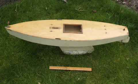 Razorbill I have recently acquired hardchine plywood built yacht hull. It seems to fit 36R class I.E. L 35 3/4" B 9" full depth 10 7/8" weight hull only 10 lbs. In 1960's plans handbook nearest I.D. profile is W.J. Daniels "RAZORBILL". Can anyone confirm or otherwise Regards Brian Paul VMYG member