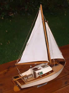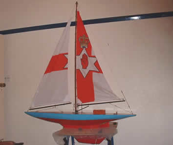 I have recently acquired two boats (the children have grown up and I now have time for a hobby!) and am hoping you might be able to shed some light on there identification class etc. The first boat was given to me by my Brother-in-Law following a loft clear out, but unfortunately he has no idea of its age as the old gentleman he acquired it from has long since passed on. It is approximately 24" long, the attached photo was taken before I started to strip it down for a refit. It is my intention to plank the deck (it is currently approx. 2 mm thick plywood with pencil marked planks) and would be grateful for any advice on what material to use and where it may be obtained, similarly any advice on appropriate rigging, fittings etc would be much appreciated.