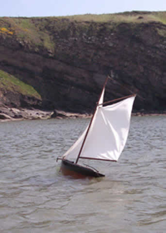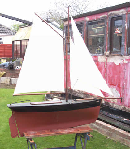 Russell Pott's reply: Owl might be built to the '1730' Tonnage Rule. I have done the sums and she comes out as rating 14.45. This is sufficiently close to the 15 Ton limit (especially bearing in mind that we are using an estimated waterline) for her very probably to have been built as a 15 Tonner to the '1730' Rule. Her weight is in the right ball park for a 15T also. If she is a 15T, her date of 1875 is suspect, because the Rule dates from 1881-87 and was not immediately taken up by modellers. The fact that she appears to fit the Rule does not absolutely rule out an earlier date, but makes it fairly unlikely. If she is a 15 Tonner she may well date from a good bit later than the brief life of the Rule for full size yachts. See the exposition on the web site. This also gives you some idea of the style of sail plan that she would have carried. The actual sizes in the illustration on the site relate to a 10 Tonner of course. I think that this is as far as I can go in identifying the boat. Almost certainly she would have had no rudder, or a series of weighted rudders. In any case the style of tiller that you have given her would not have been used on a practical model. Follow up by Owner I am pleased to report that the Good Ship Owl has sailed. Perfect conditions in a nearby Haven, combined with an unexpected volunteer to help me, brought the occasion forward.