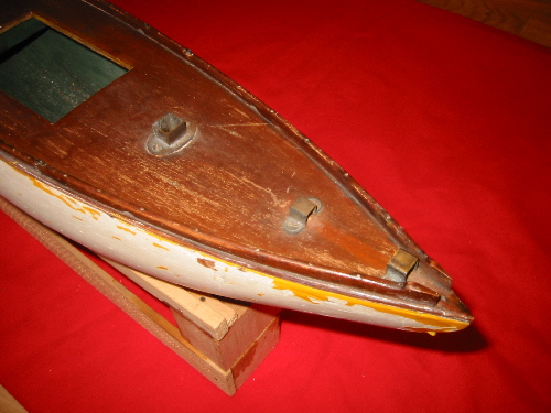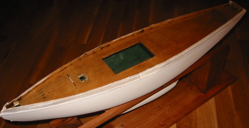The hull is carved from one piece (pine I think)and stained dark green inside,