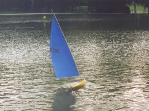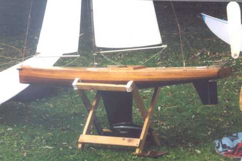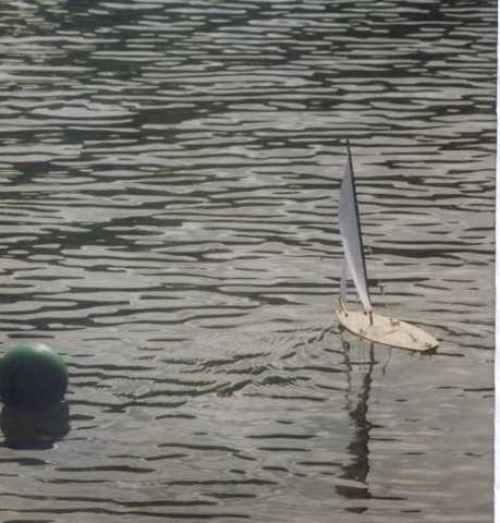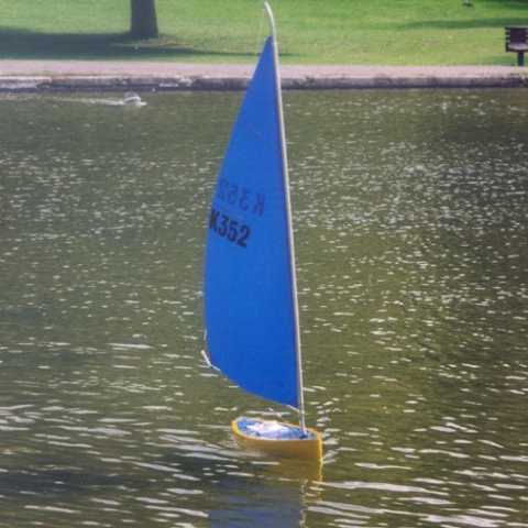 A radio controlled one design boat from the 1970s. This is a Mickey Finn.
