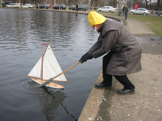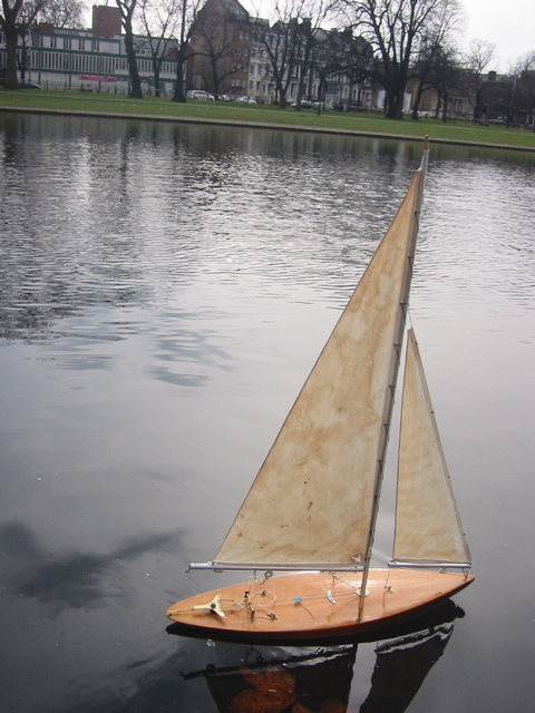 Manfully beating up the pond with original sails,