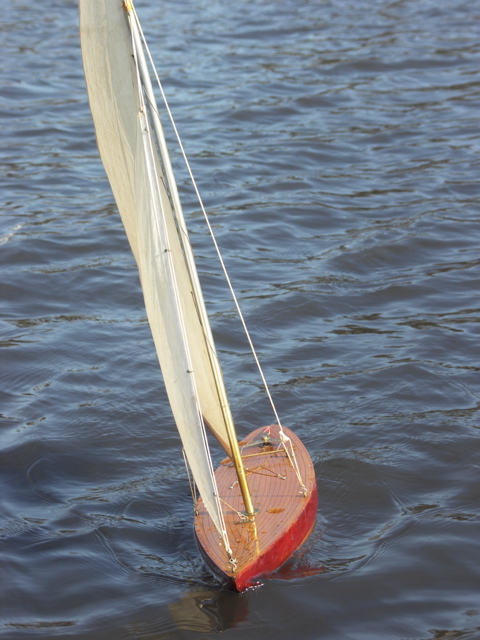 Jim has now rigged and restored the elegant cream and white cutter brought