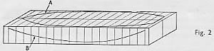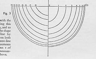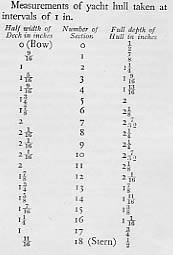 A MODEL YACHT taken from The Handyman and Home Mechanic circa 1932 To make the model racing yacht illustrated in Fig.1 procure a flawless piece of soft pine about 19 in. long by a trifle over 41/2-in. wide and 2 3/8 in. thick and plane it up perfectly square to a finished size of 19 in. by 4 3/8 in. by 2 5/16 in. Draw a centre-line down the entire length of one of the wide faces and divide this line into 18 1 in. sections. With a try-square and pencil draw lines across the face at the marked positions at right angles to the centre and carry them down the narrow sides, as shown in Fig. 2 . The next step is to number the section lines, starting with the bow, and calling this No. 0, then 1, 2, and so on, and mark the shape of the deck-line by making points on both sides of the centre-line from the measurements given in column 1 of the table of measurements given below