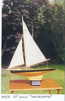 Much of the variation in production will now be impossible to disentangle, but we have some small insights. Early (pre-1939?) hulls have a rounded counter stern, but more recent (post 1945?) models have a square stern. [early round stern] The Star trademark logo was originally a brass pressing nailed to the deck, but this was changed at an unknown date to the more familiar transfer. The last production run of yachts have blue sails. Names have been changed at various times, For instance SY7 yachts exist named both as Arctic Star and as Ocean Star. Whether this is a considered policy, or the result of a shortage of the appropriate name transfers is impossible to determine. The catalogue is a trade catalogue. Most of the boats were sold through toy shops and department stores, particularly in seaside towns, but some of the larger boats were sold at one stage by Bassett-Lowke, who bought in a number of ranges of superior quality toy boats throughout their existence. There will be pages on Bassett's activity in the toy end of the market in due course. You will see that the last pages of the